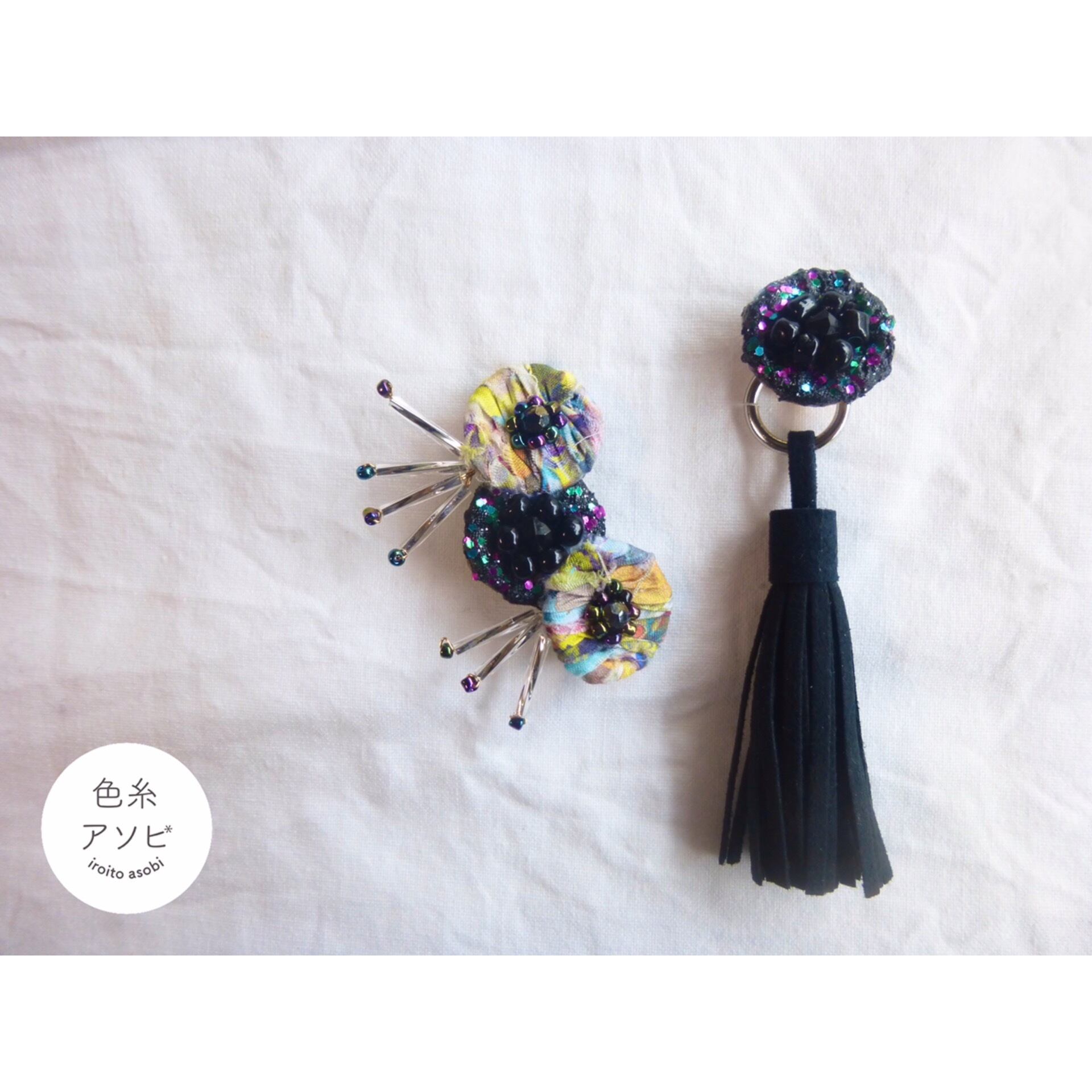 素材:綿、ビーズ、スエードタッセル 骨組み:針金